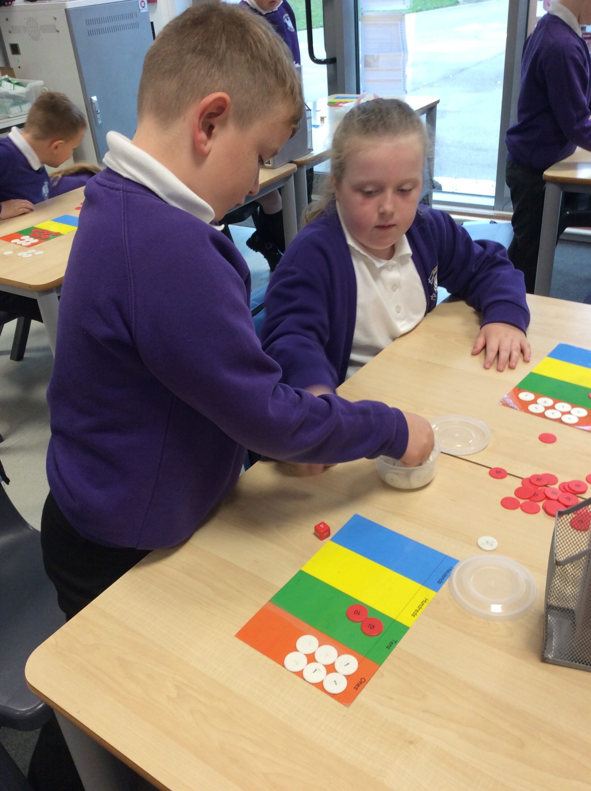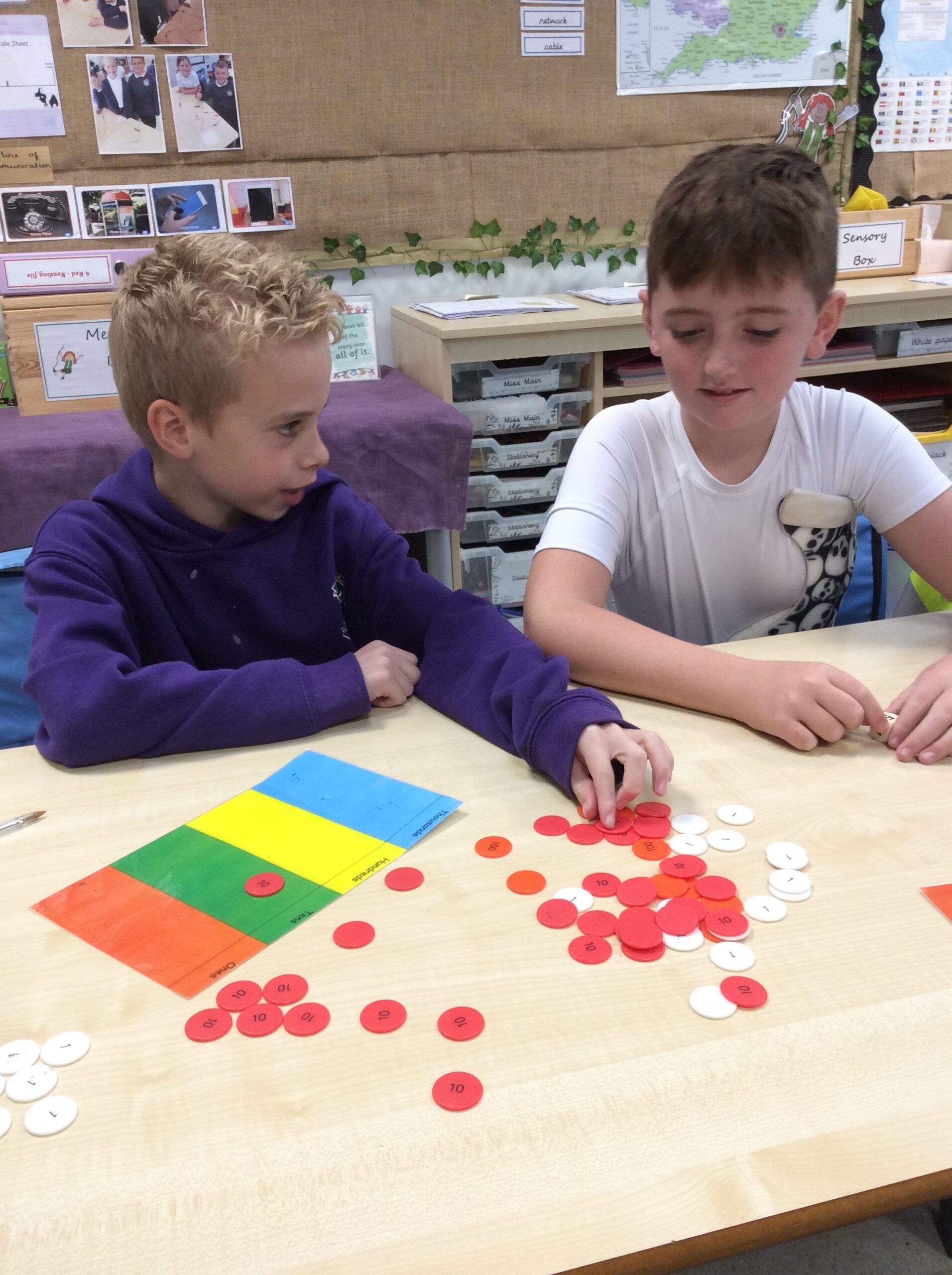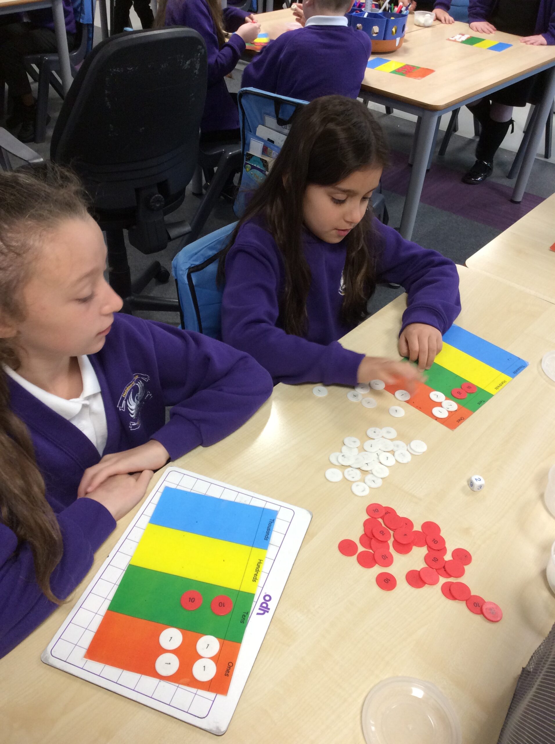 Today the children practiced their exchanging skills by competing against a partner to be the first to reach a given total. To reach their total they were required to exchange the following: ten ones for one ten, ten tens for one hundred and ten hundreds for one thousand.