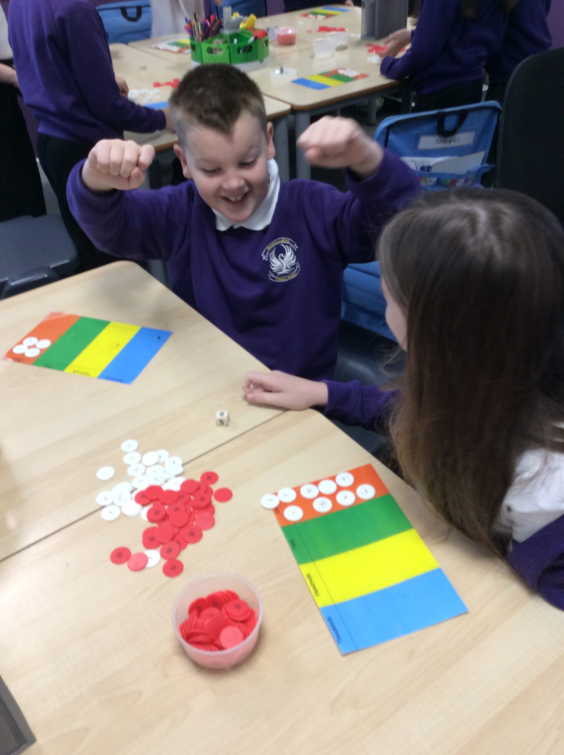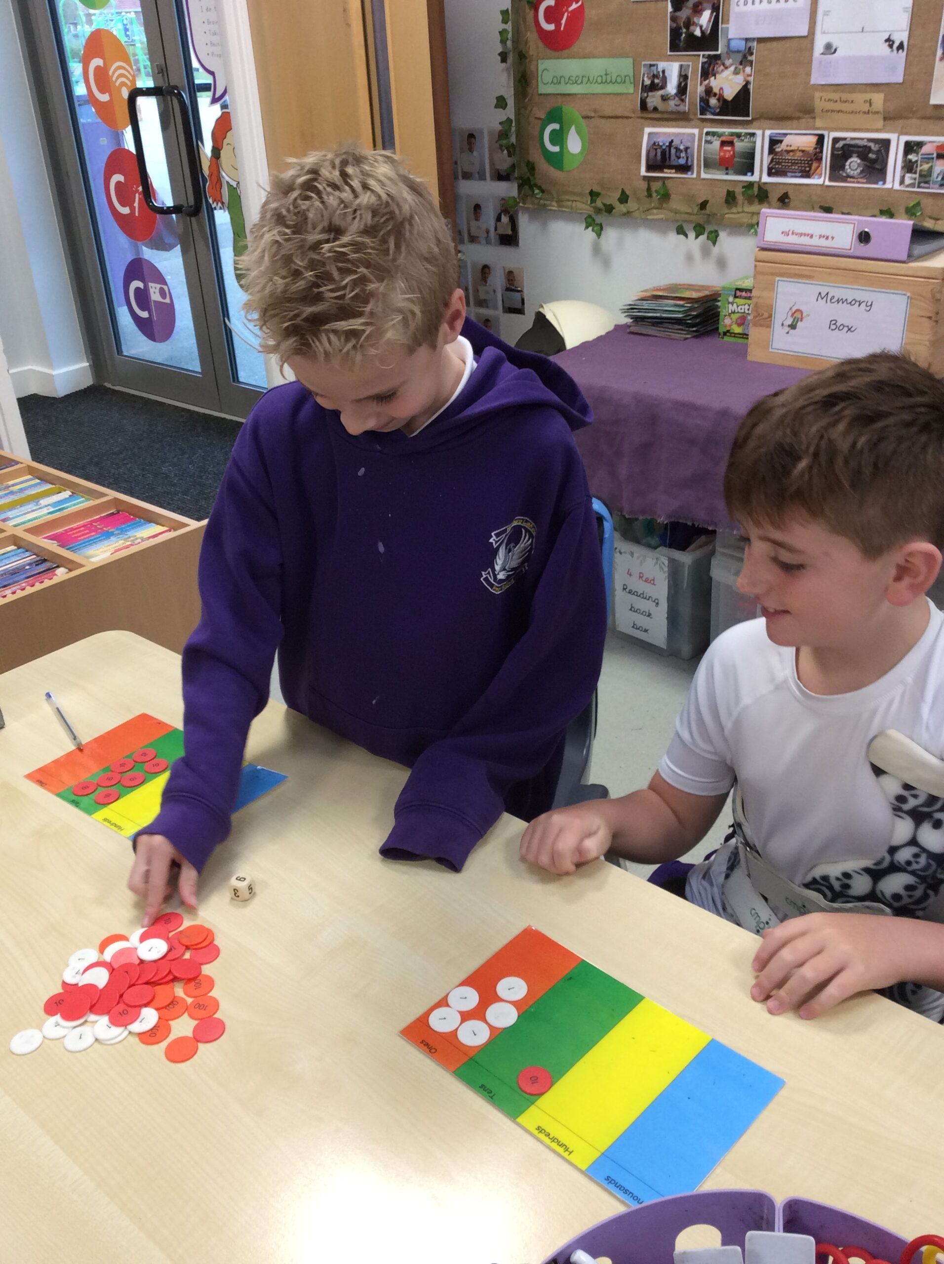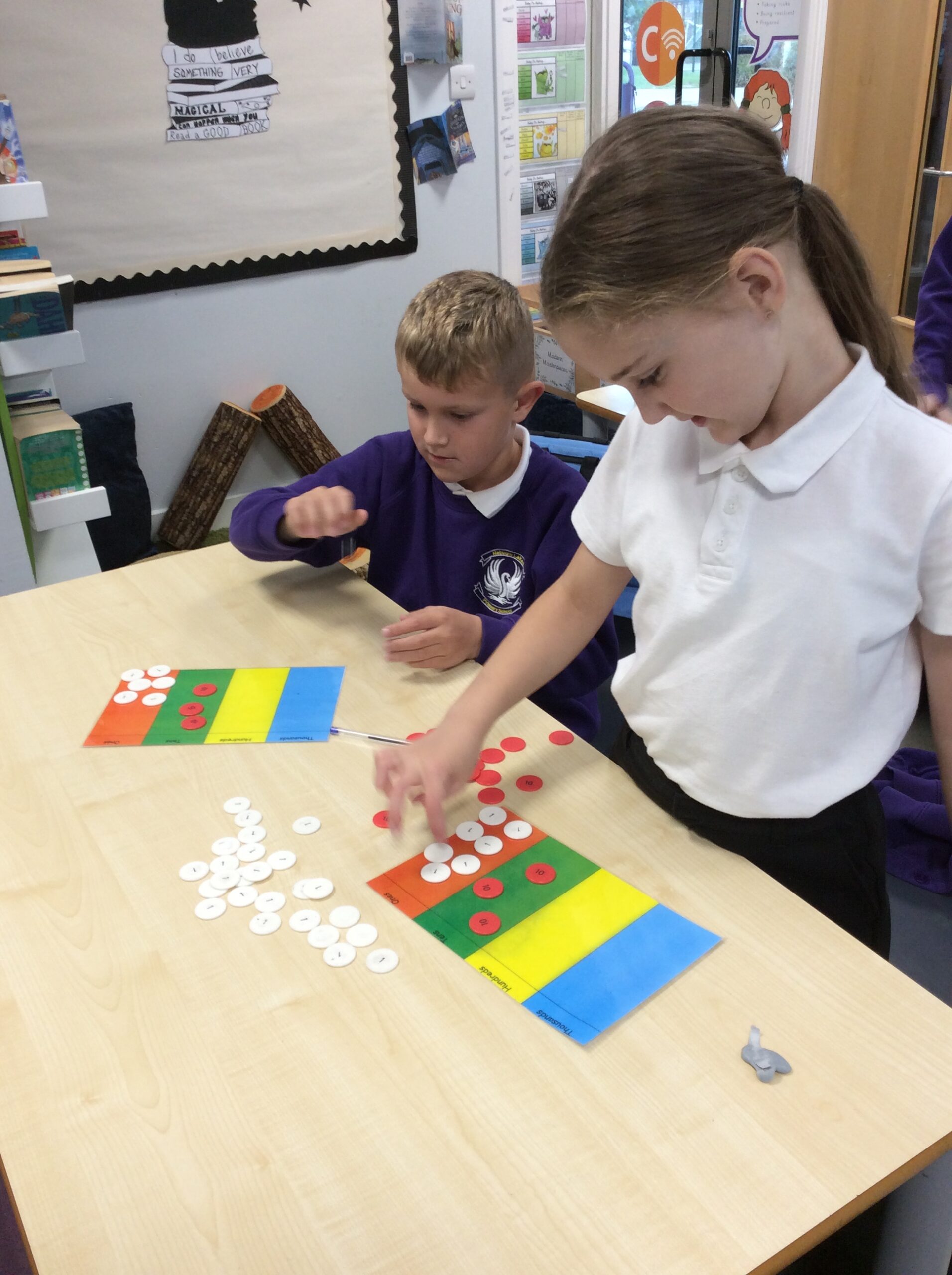 Today the children practiced their exchanging skills by competing against a partner to be the first to reach a given total. To reach their total they were required to exchange the following: ten ones for one ten, ten tens for one hundred and ten hundreds for one thousand.