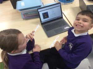 In our Learning Means The World theme ‘Inter-Nation Media Station’ we have been looking at how tv shows, radio broadcasts and interviews are made. We have looked at the first radio broadcast and the first tv broadcast that changed from black and white to colour. We can not quite believe that some of our Teachers were around when there were only 4 TV channels and they had not heard of a remote control! We love learning about how far our technology has come and we decided to have a go at animating our own character and adding a voice to it. We then discussed what technological advances the future may hold ….time machine perhaps?