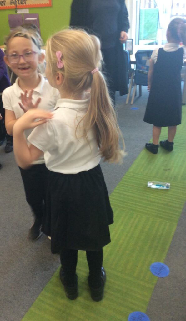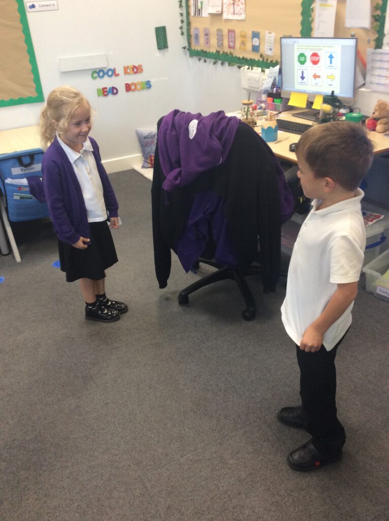 Today in our Learning Means the World lesson, we have been doing some computing. We have been looking at what algorithms are and how they work. We got into pairs and one person was a robot and the other was the instructor. We used directional language like “forwards and backwards” to give the robot an algorithm (a series of instructions). We also loved performing our algorithms for the camera!