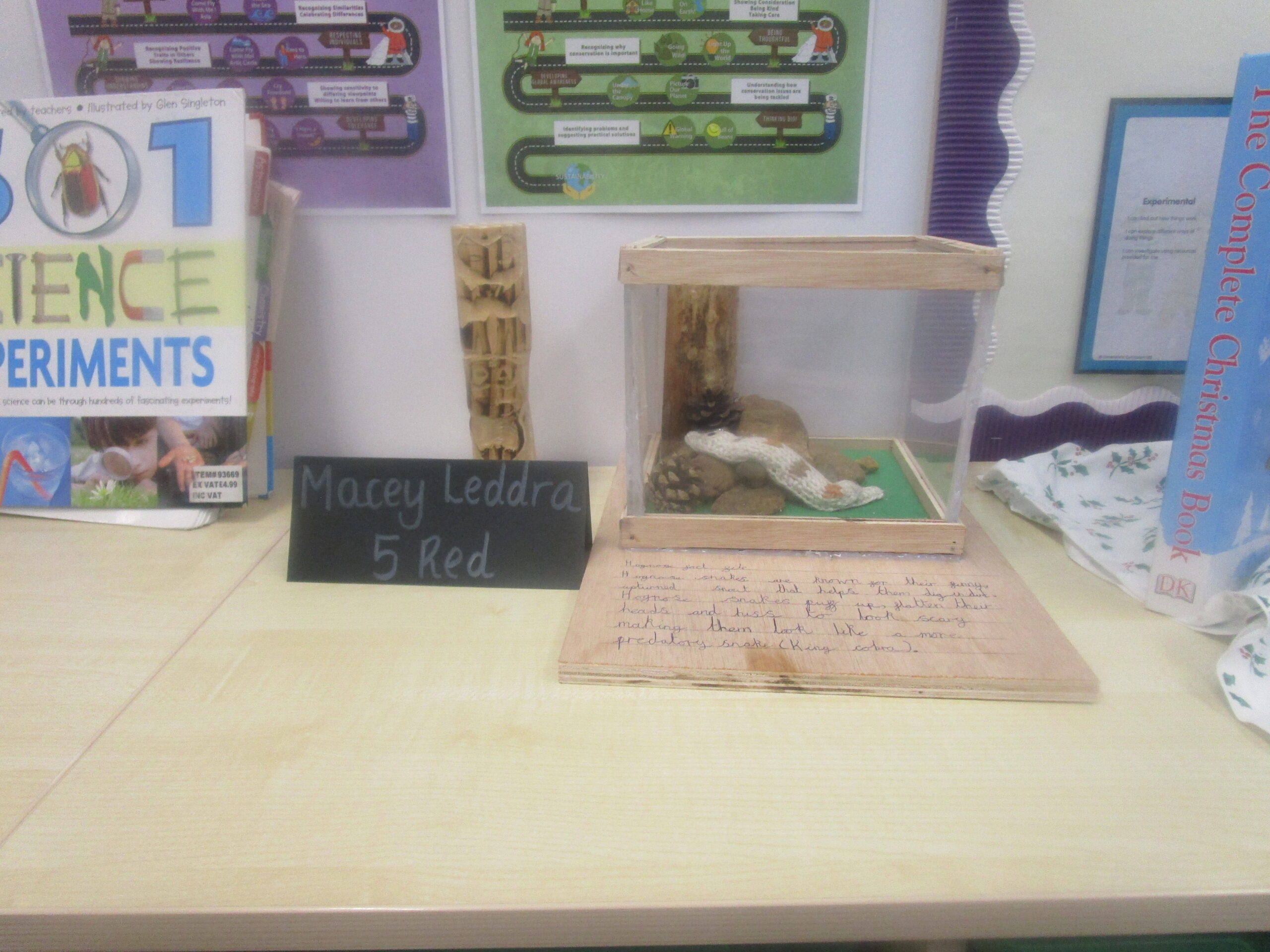 Macey created a wooden enclosure at home for her knitted hognose snake, endemic to the desert lands in North America. Macey did this after a lesson on biomes in our Learning Means the World theme “Come Fly With Me America”.