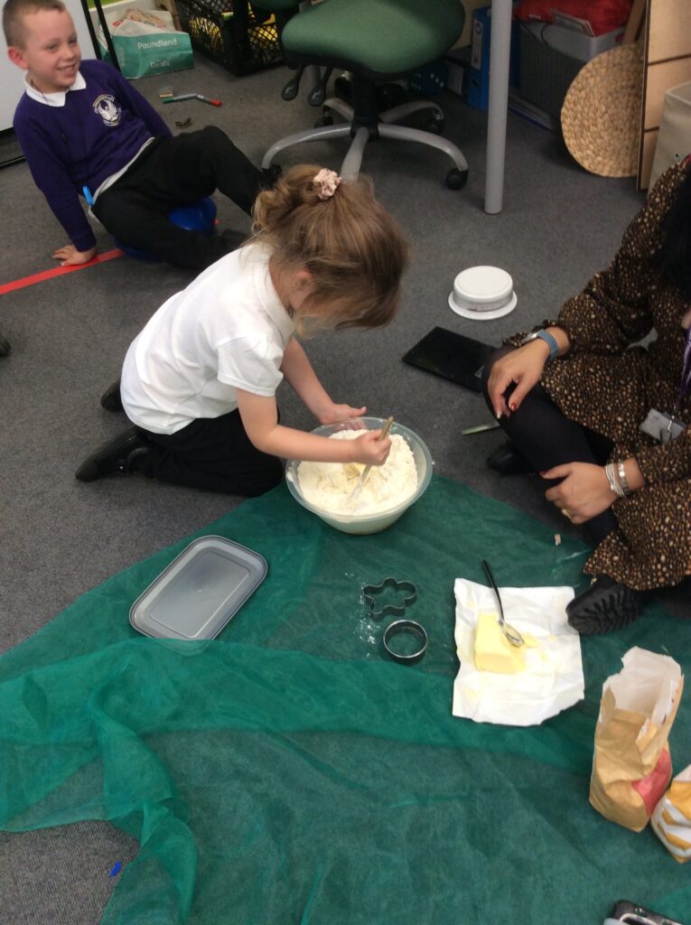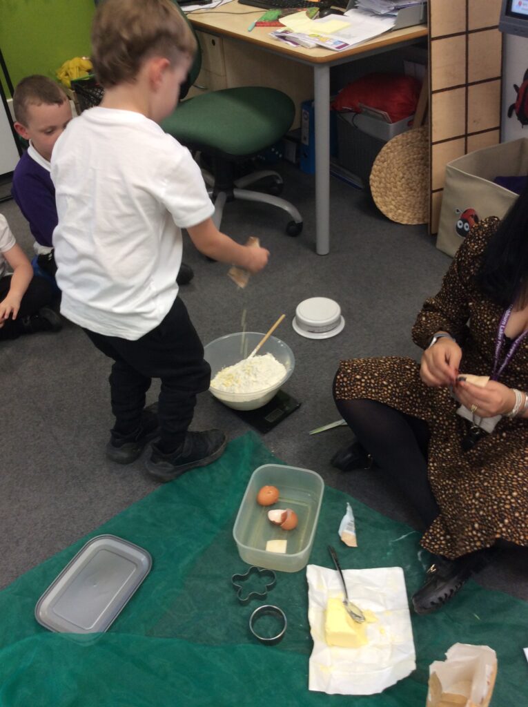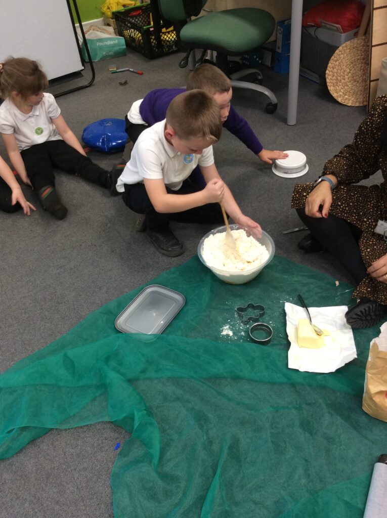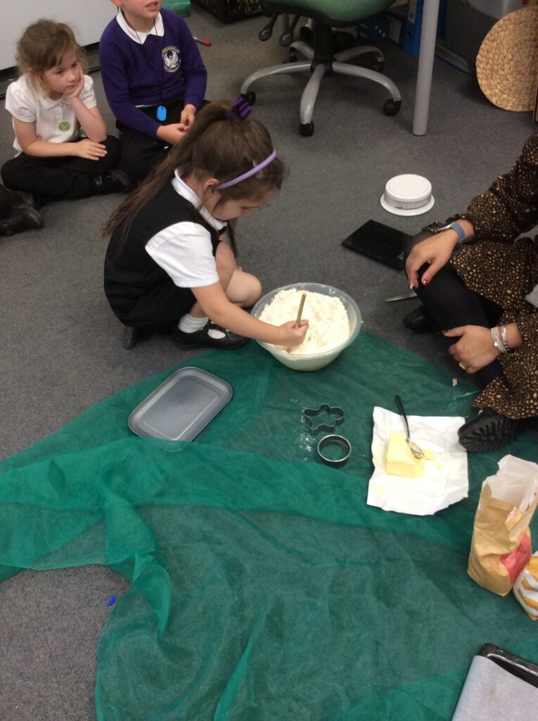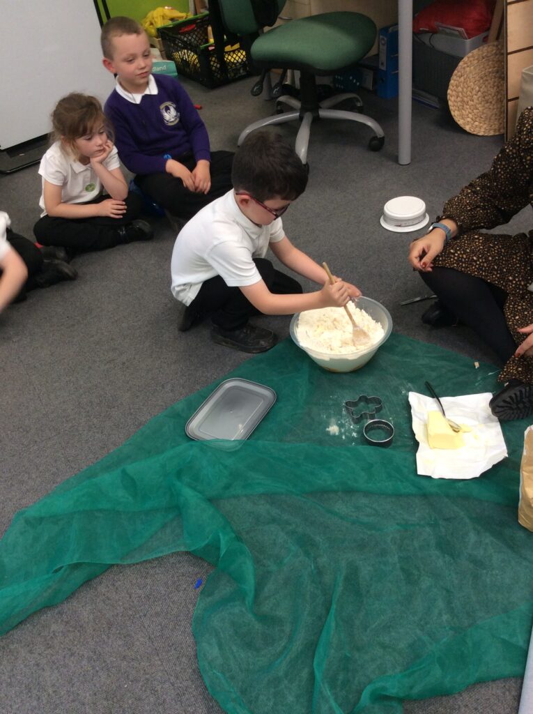 In Learning Means the World we have been looking at weight and measurement in our DT/Maths aspect of the curriculum, so we decided to make cookies like Little Red Riding hood did to take to her grandma. We looked at all the ingredients needed, followed a recipe and weighed and measured the correct amounts to make the cookies before mixing, kneading and cooking. We finally ate them and the general consensus was that they were delicious.