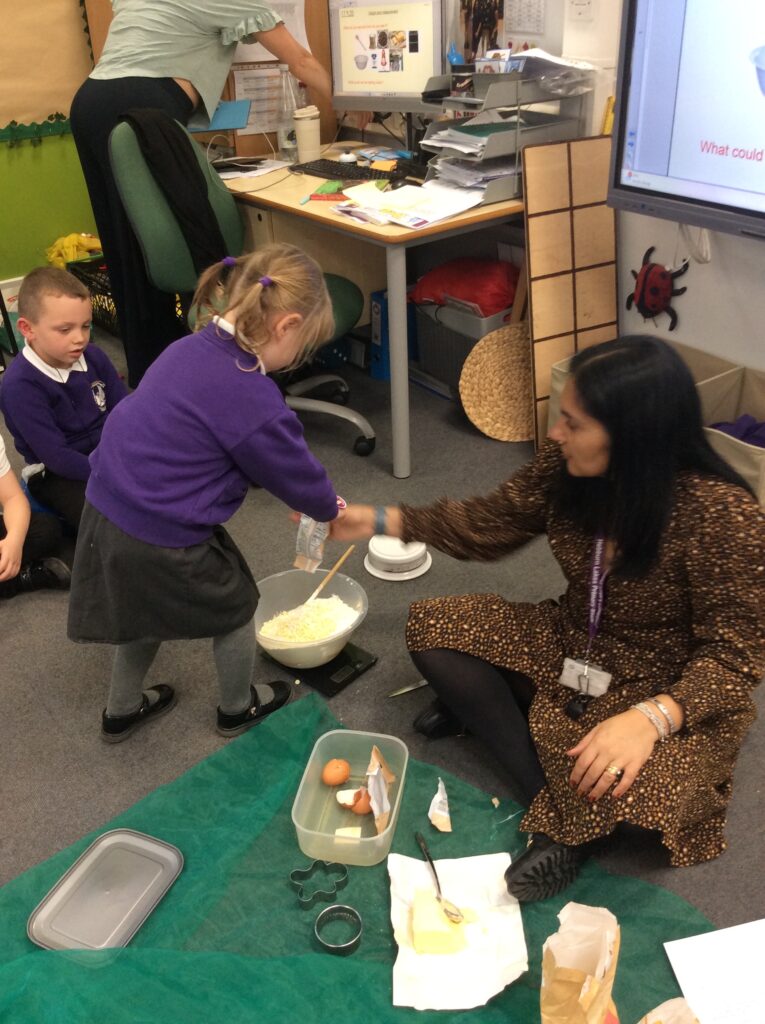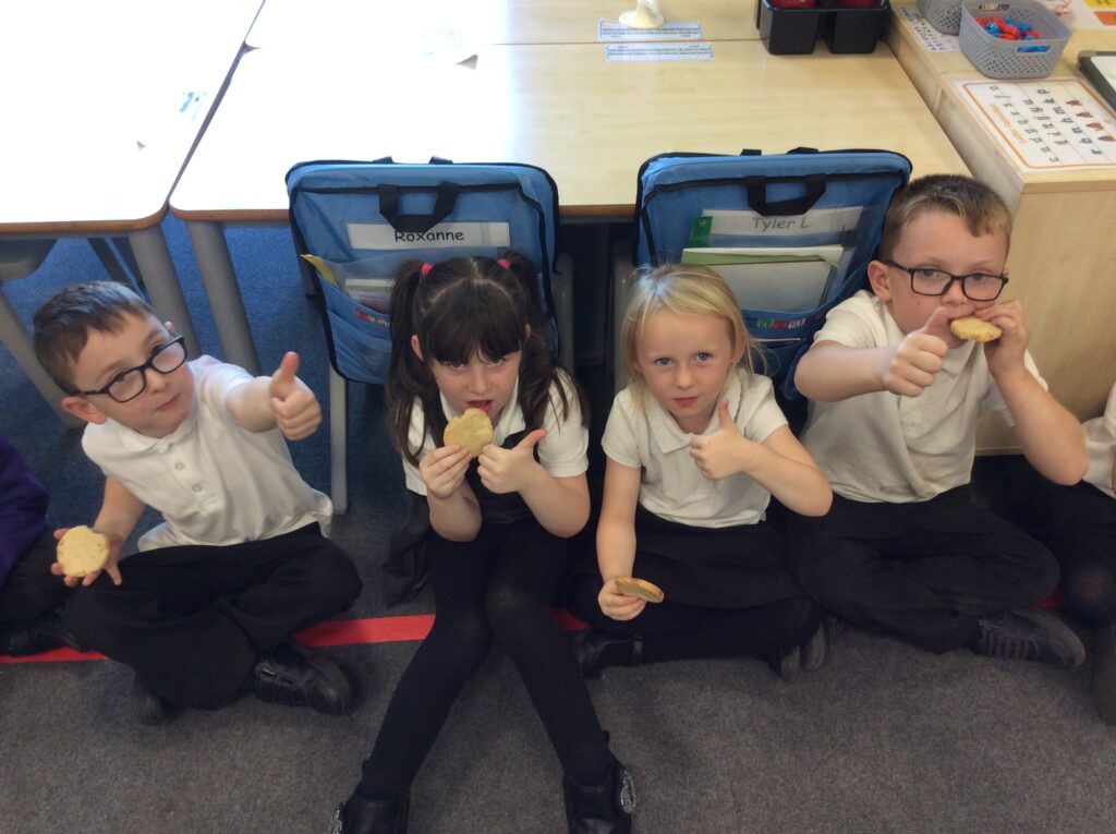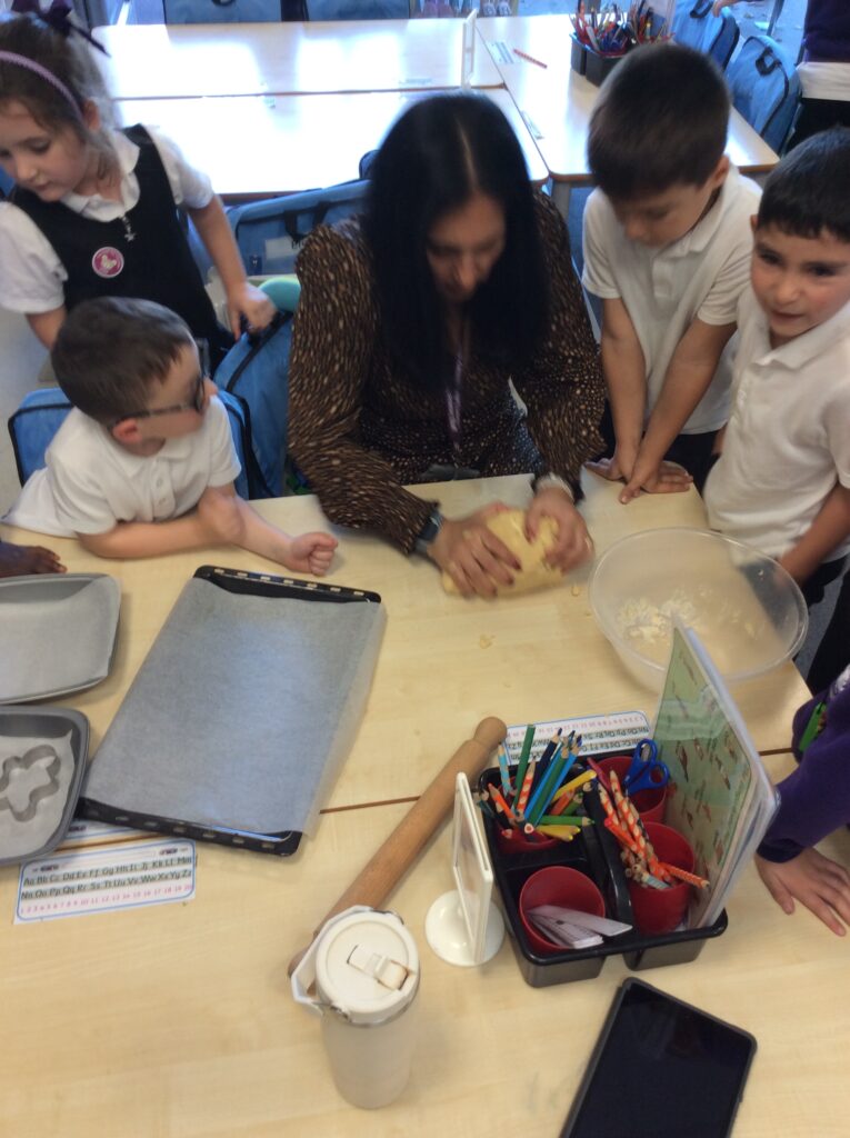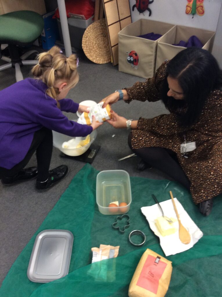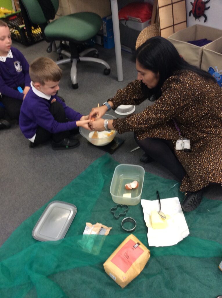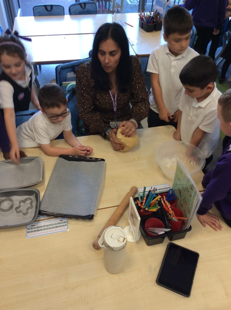 In Learning Means the World we have been looking at weight and measurement in our DT/Maths aspect of the curriculum, so we decided to make cookies like Little Red Riding hood did to take to her grandma. We looked at all the ingredients needed, followed a recipe and weighed and measured the correct amounts to make the cookies before mixing, kneading and cooking. We finally ate them and the general consensus was that they were delicious.