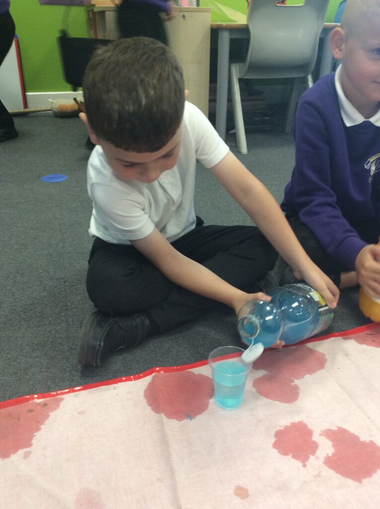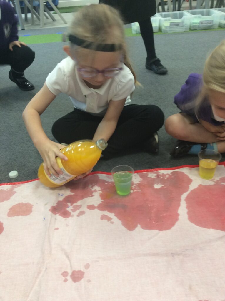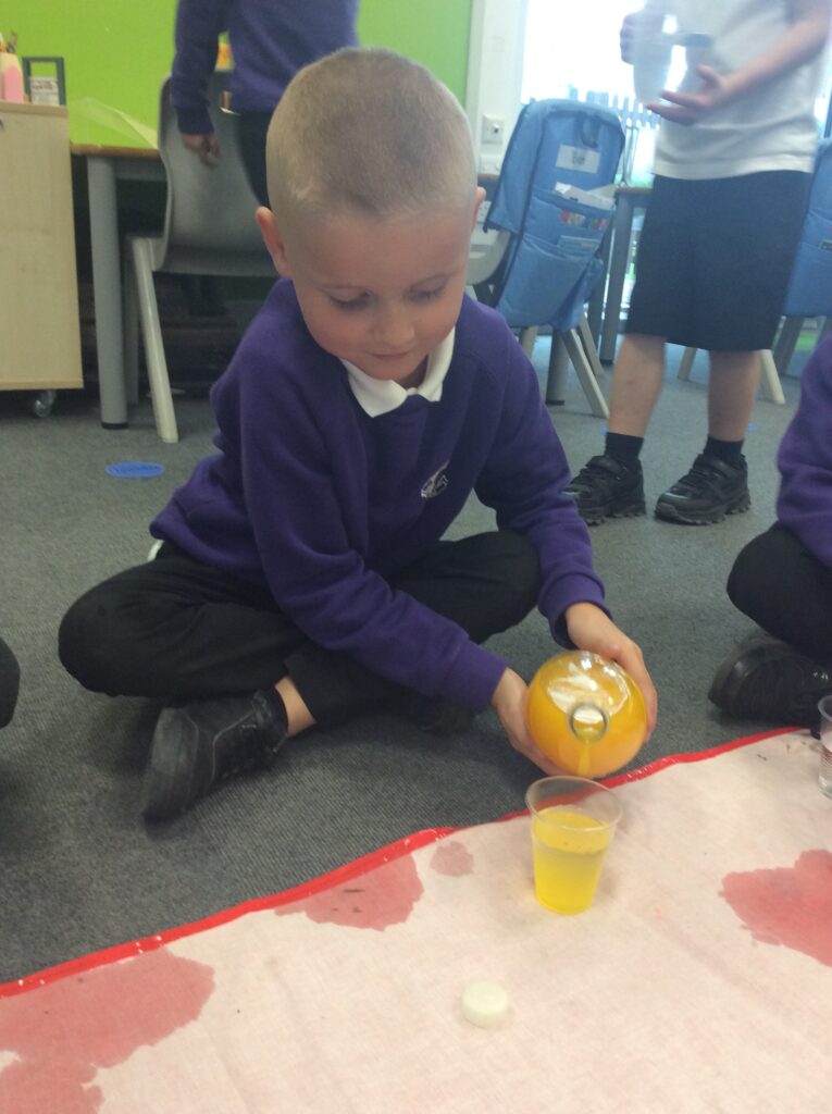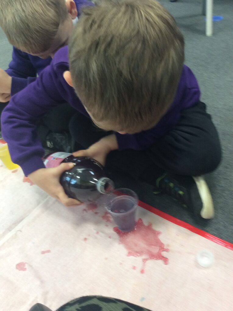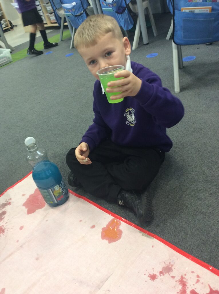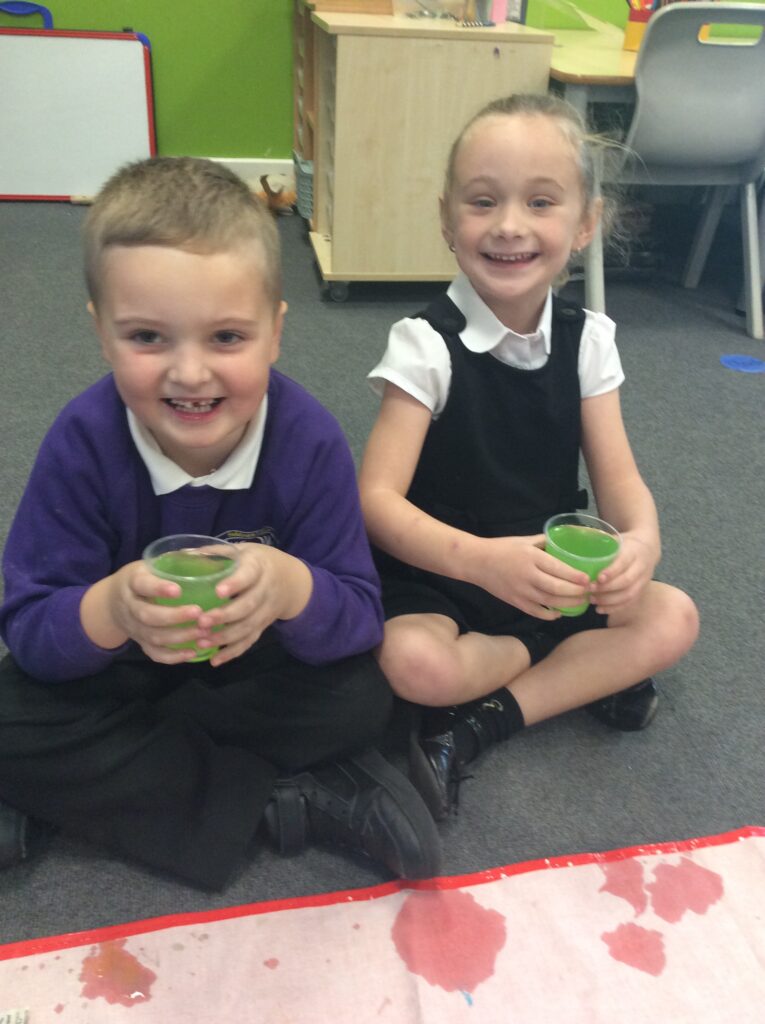 In Year 1, we have been looking at instructions and how we use them. Today, we decided to make a witch’s brew using lots of different ingredients. We used our imagination when making the brew and changed the name of the ingredients to fit the theme of Halloween. We used sequencing vocabulary to orally tell our friends how to make the brew before finally drinking it. We loved being witches in this lesson!