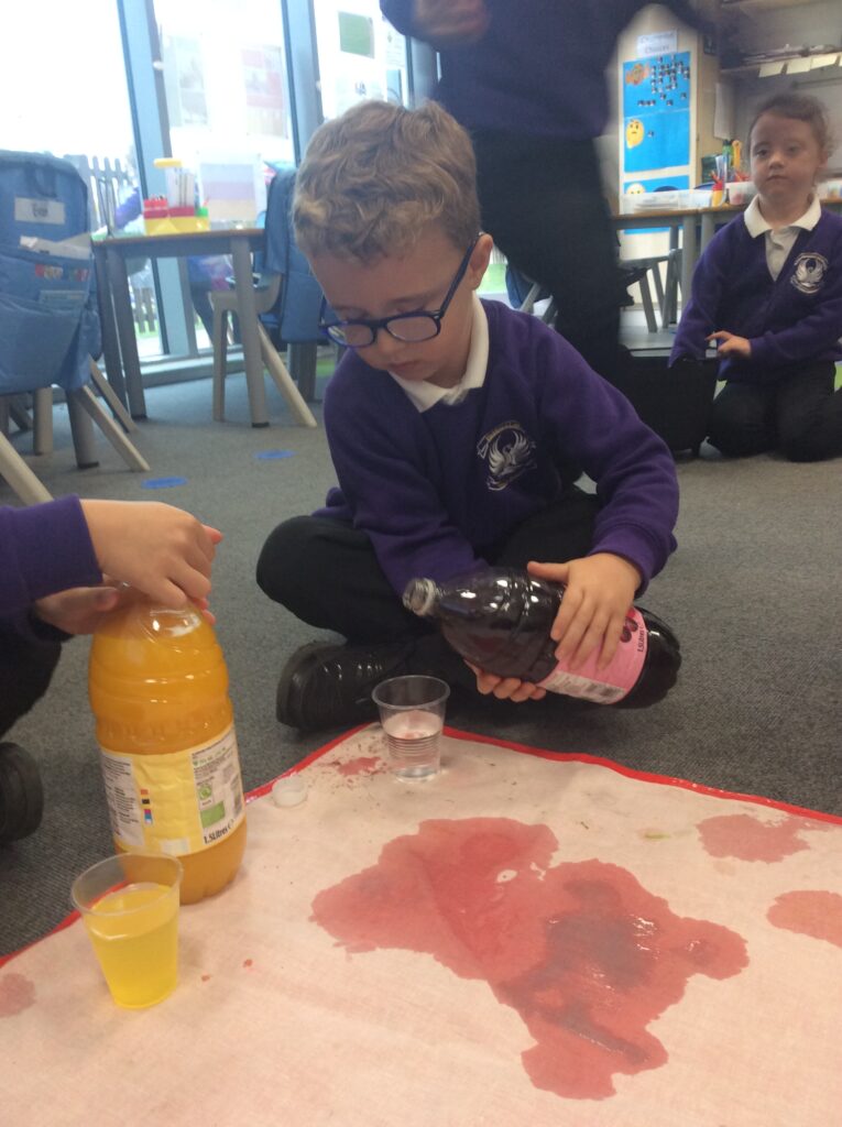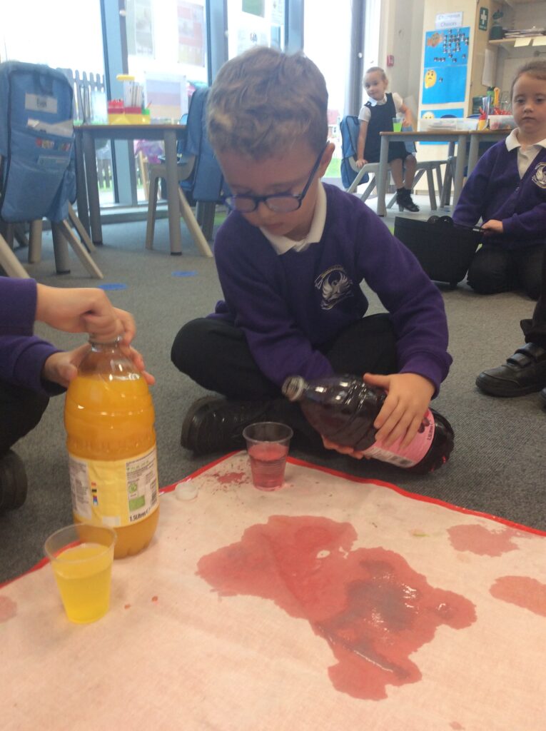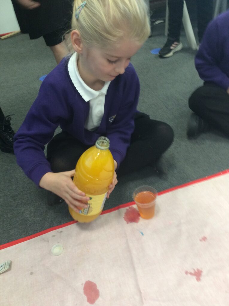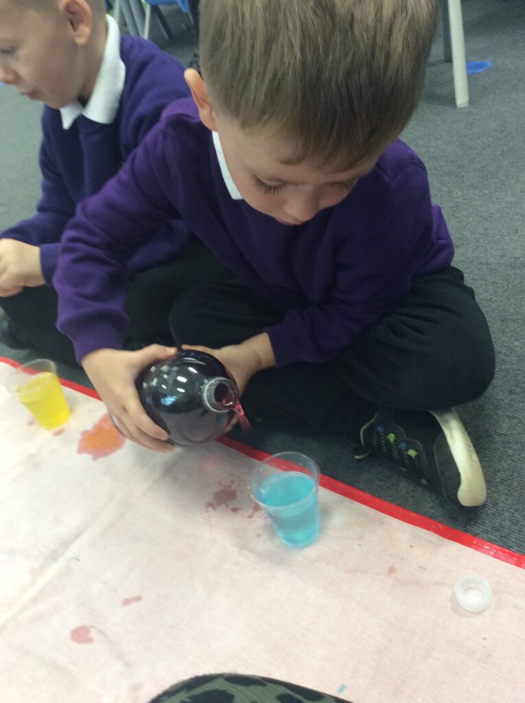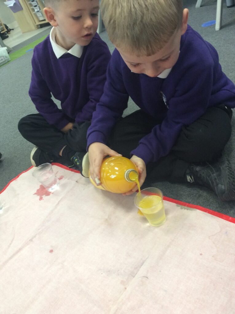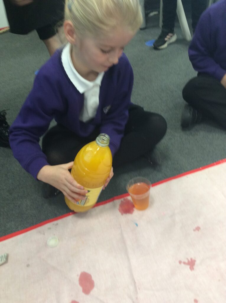 In Year 1, we have been looking at instructions and how we use them. Today, we decided to make a witch’s brew using lots of different ingredients. We used our imagination when making the brew and changed the name of the ingredients to fit the theme of Halloween. We used sequencing vocabulary to orally tell our friends how to make the brew before finally drinking it. We loved being witches in this lesson!