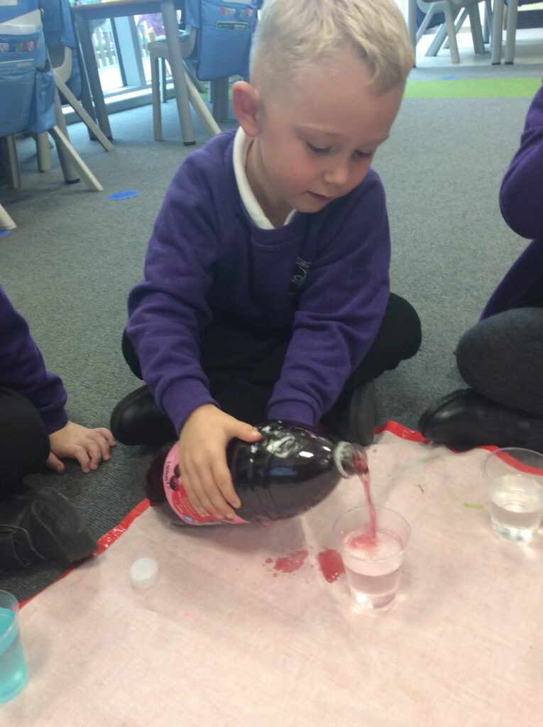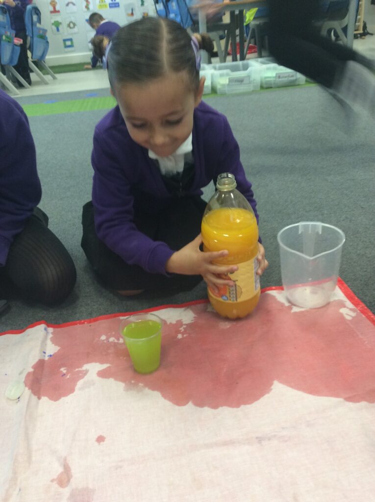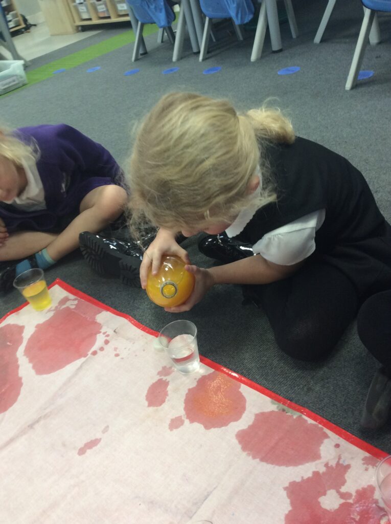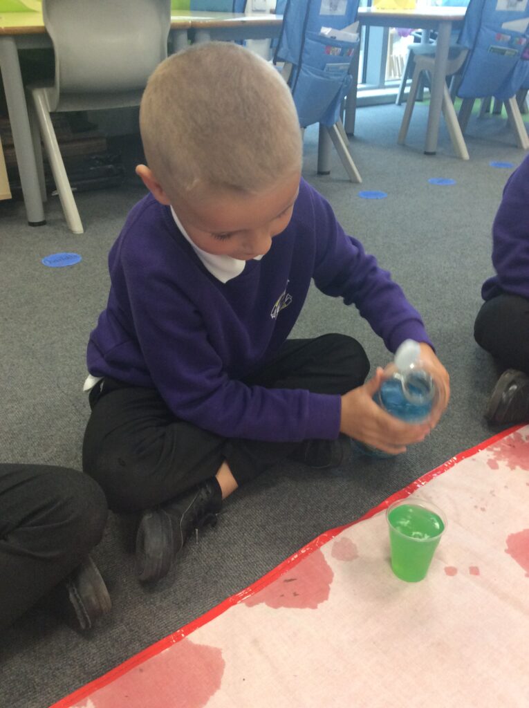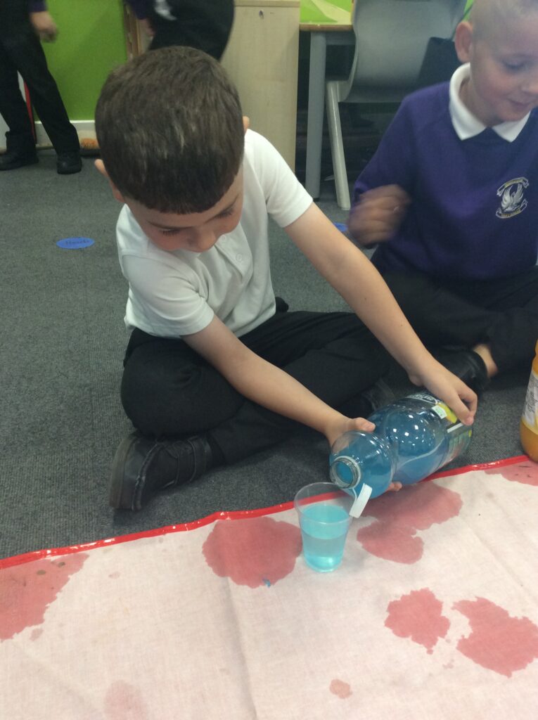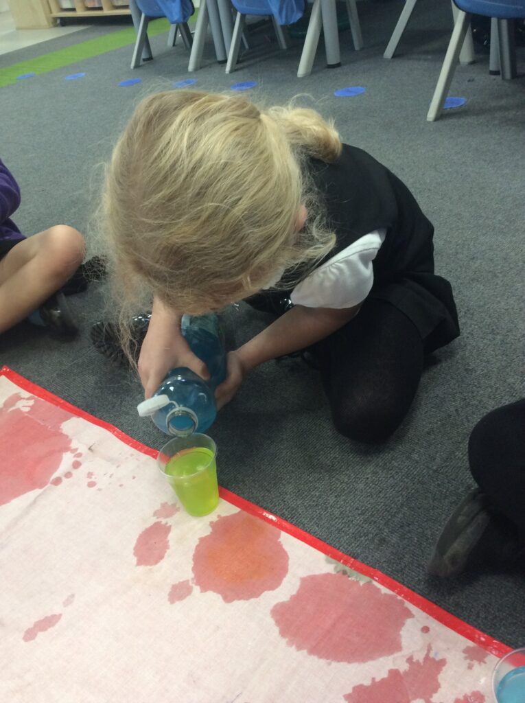 In Year 1, we have been looking at instructions and how we use them. Today, we decided to make a witch’s brew using lots of different ingredients. We used our imagination when making the brew and changed the name of the ingredients to fit the theme of Halloween. We used sequencing vocabulary to orally tell our friends how to make the brew before finally drinking it. We loved being witches in this lesson!