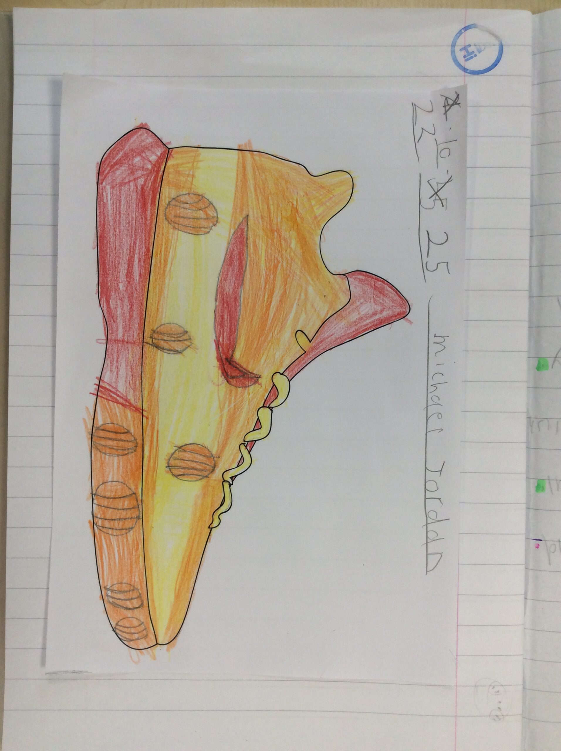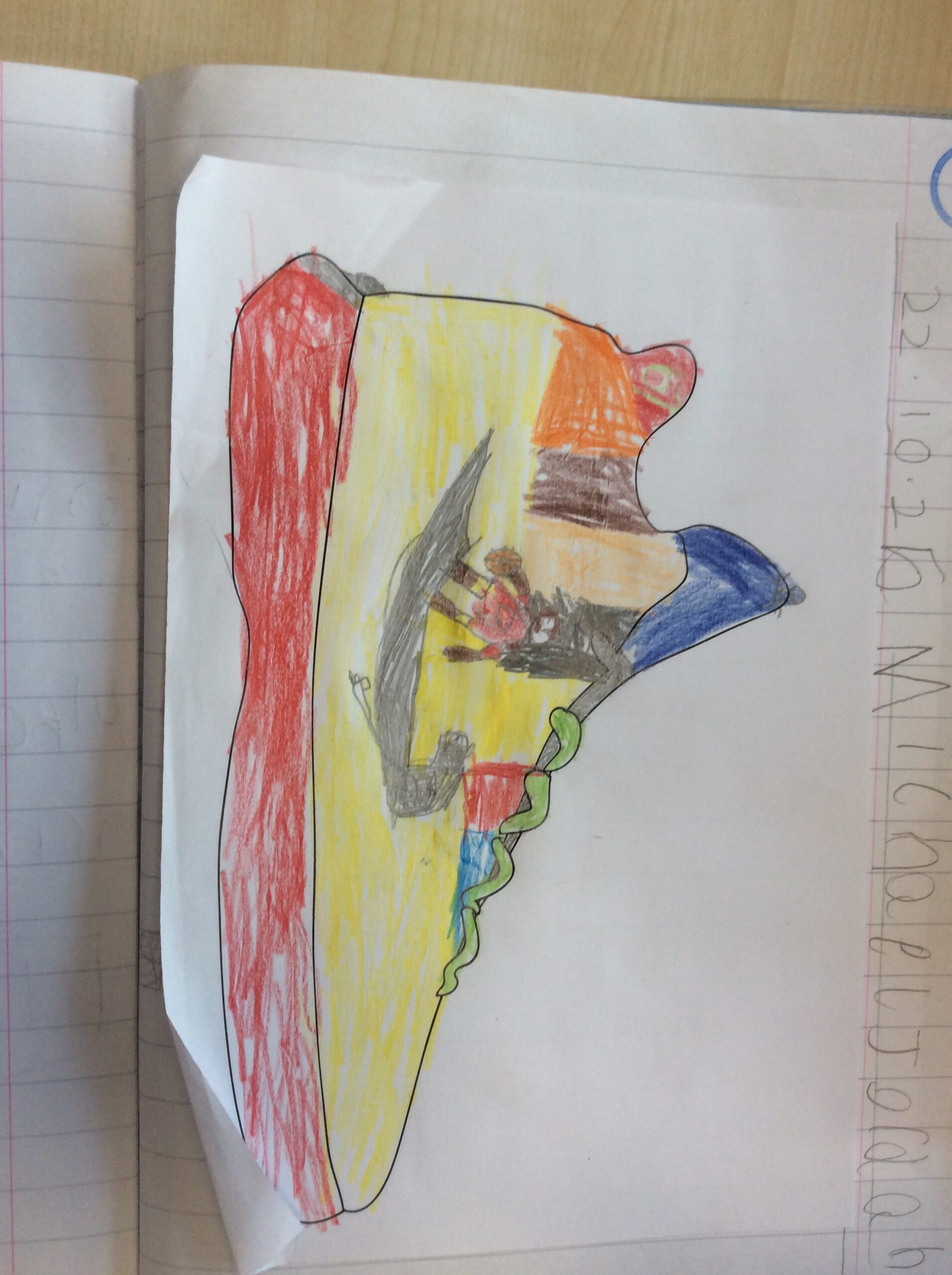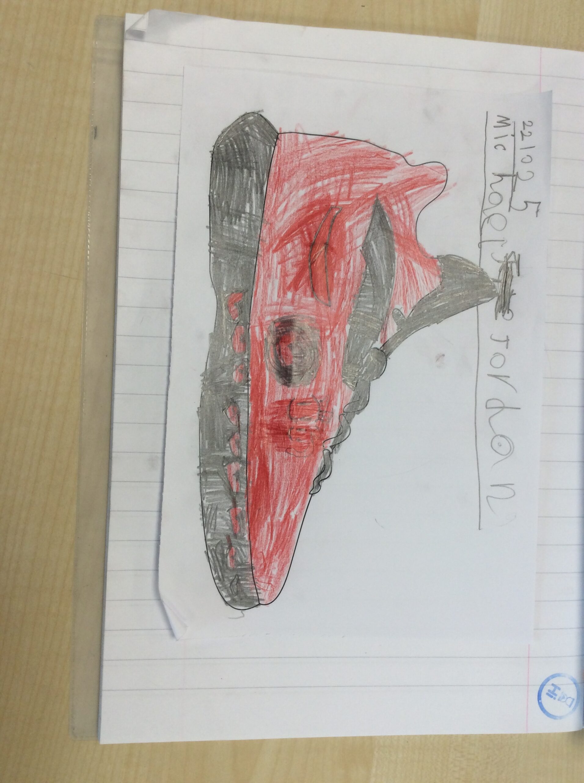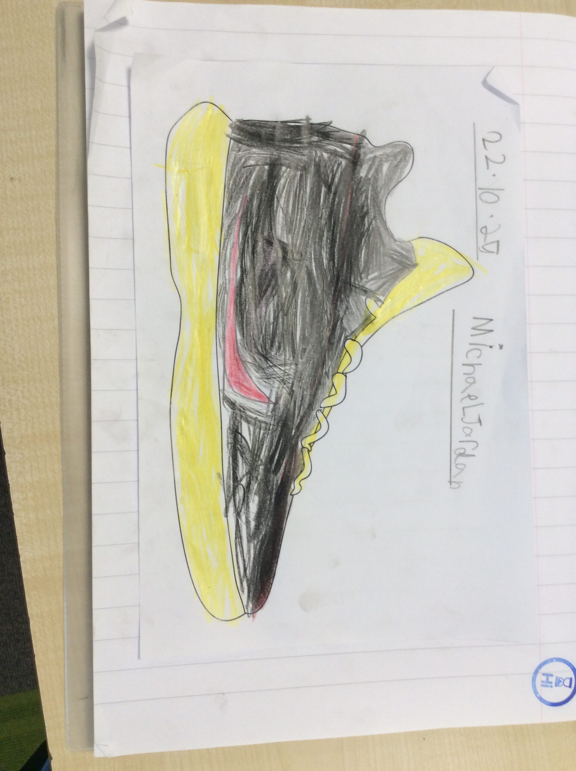 We have started our new Learning Means The World theme ‘Zero to Hero’ and one of the first people we have looked at is Michael Jordan. We found out that he was turned away from basketball but because he loved the sport he kept trying and trying until he was successful. We then decided that we needed to be a bit like Michael and keep trying our best. We then went outside and tried to shhot some hoops. We found that we got better the more we practiced. We then found out that Nike thought he was that inspirational that they named some sports shoes after him! We decided to design our own ‘Air Jordan’s’.