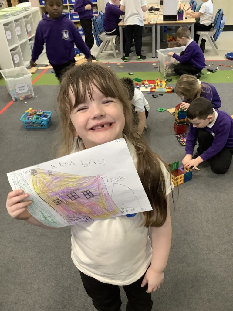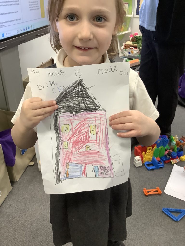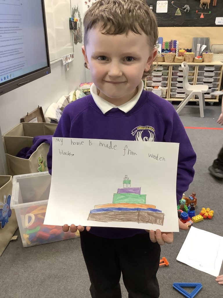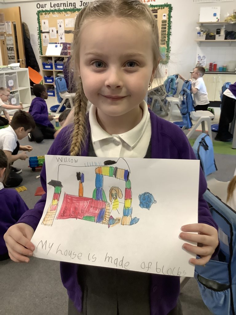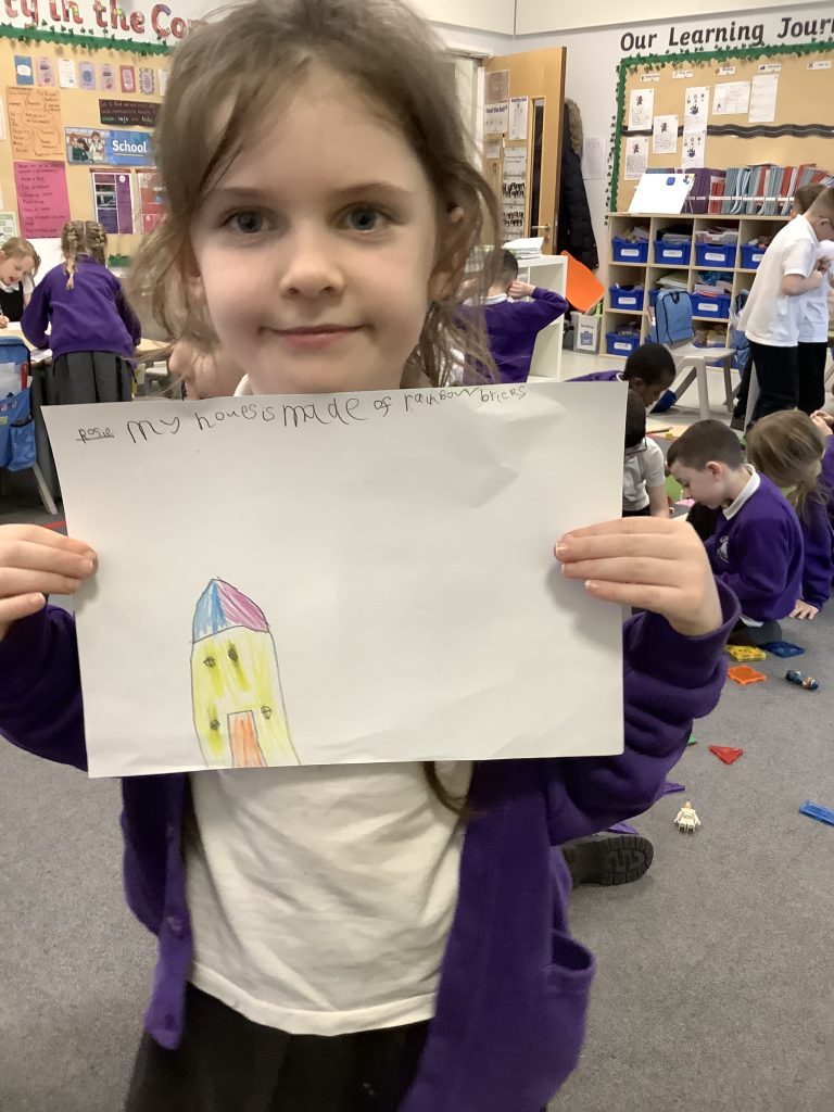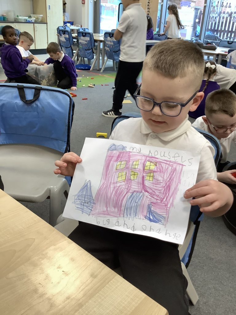 In LMTW as part of our DT lesson 1 Red lots at various types of buildings and homes in our city. We talked about the different features each building had what its purpose was and what material they were made from. The children then all worked together to use various materials to build different structures, many of the children drew a picture to go with their models.
