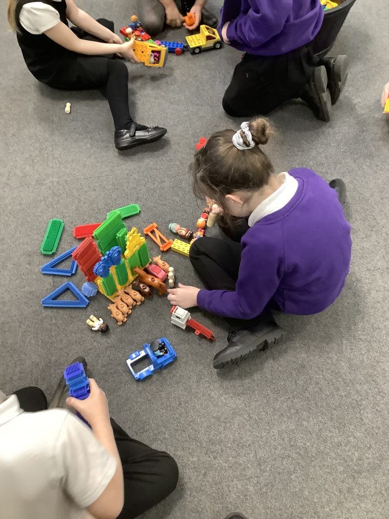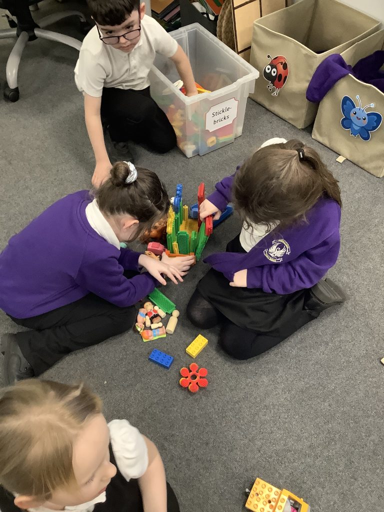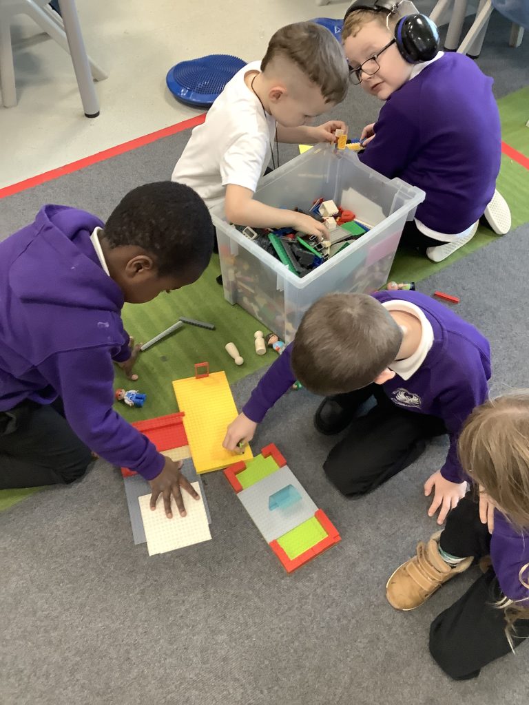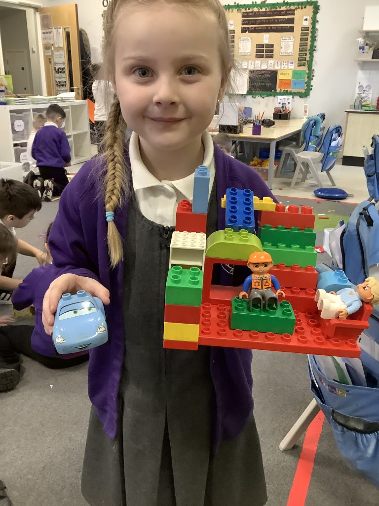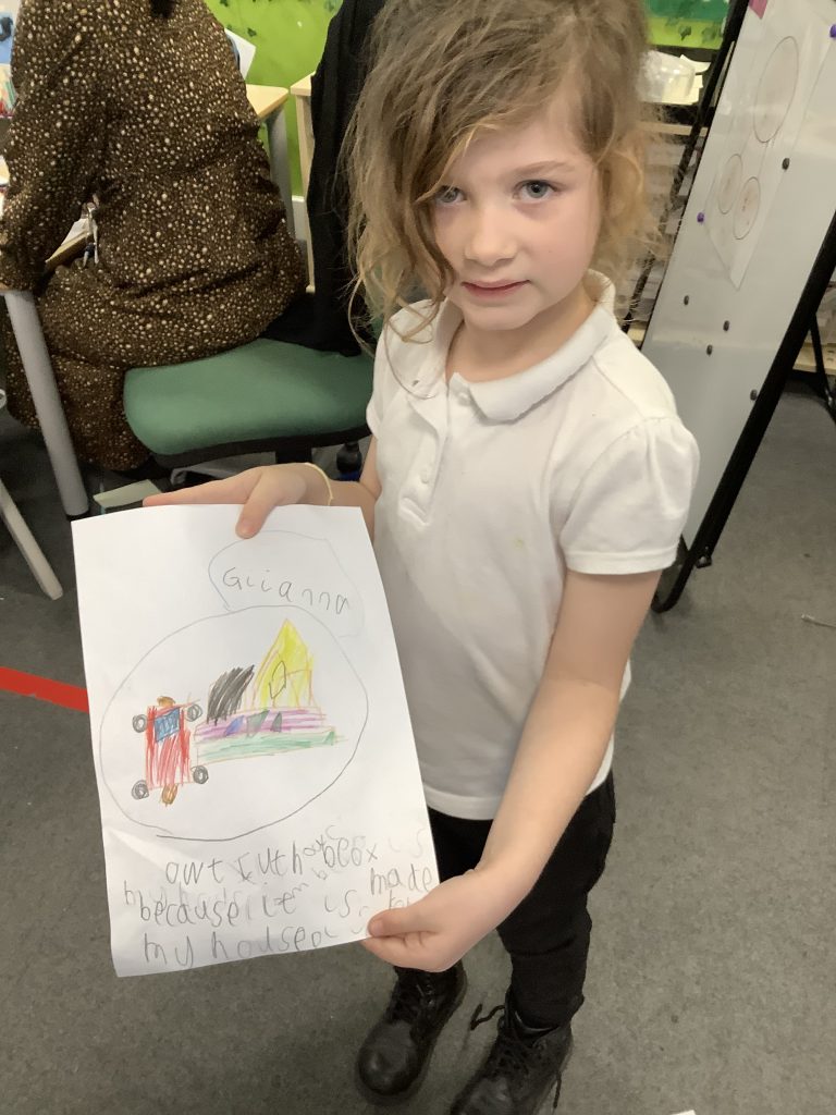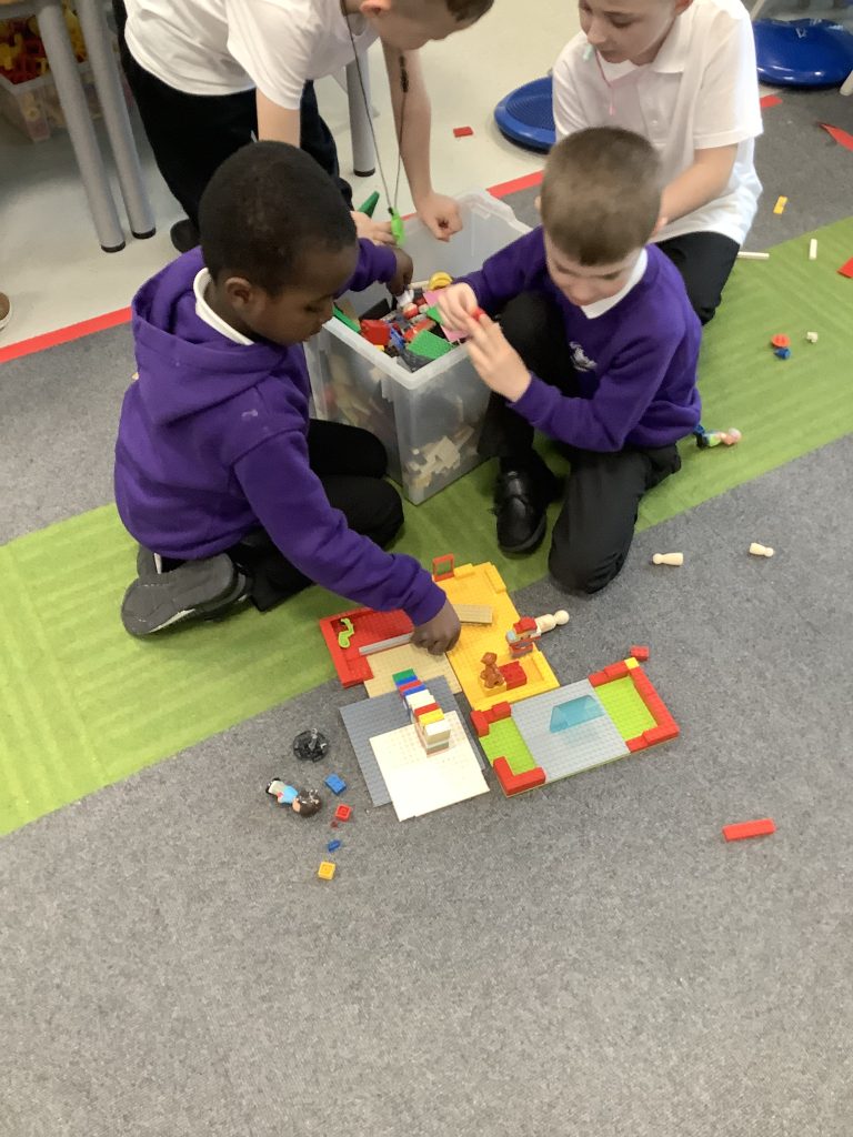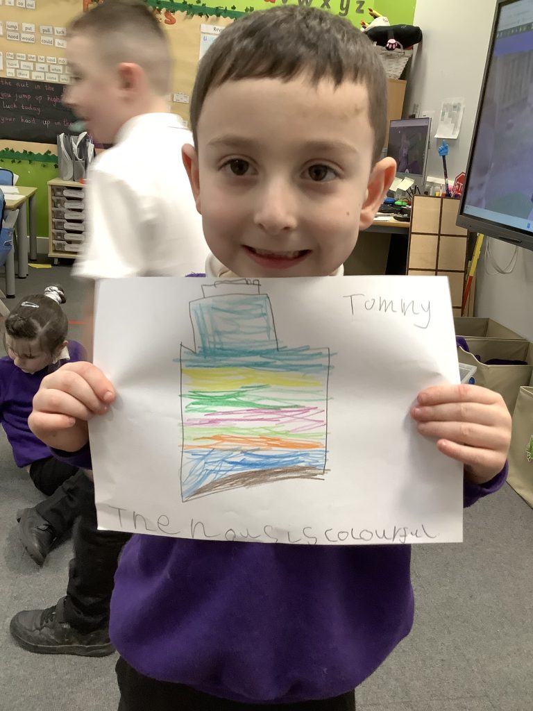 In LMTW as part of our DT lesson 1 Red lots at various types of buildings and homes in our city. We talked about the different features each building had what its purpose was and what material they were made from. The children then all worked together to use various materials to build different structures, many of the children drew a picture to go with their models.