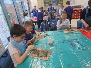 We then designed and created some fabulous and very creative roman clay pots using different skills they had learned throughout the week. Some of us then carved mosaic patterns into our pots. We think they look wonderful!